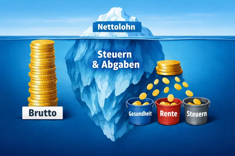 Vom Bruttolohn werden zwei Hauptkategorien abgezogen: Steuern (Staat) und Sozialabgaben (Versicherungen). Das Verständnis dieser Positionen hilft, die Lohnabrechnung zu prüfen.